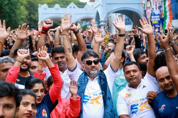 ವಾಕ್ ಫಾರ್ ರಾಜೀವ್ ಮ್ಯಾರಥಾನ್ ಕಾರ್ಯಕ್ರಮ ಉದ್ದೇಶಿಸಿ ಮಾತನಾಡಿದ ಡಿಸಿಎಂ ಡಿಕೆ ಶಿವಕುಮಾರ್ ರಾಜೀವ್ ಗಾಂಧಿ ಅವರ ನೆನಪಿನಲ್ಲಿ ಈ ಕಾರ್ಯಕ್ರಮ ಆಯೋಜಿಸಲಾಗಿದೆ.ದೇಶದ ಯುವಕರಿಗೆ 18ನೇ ವರ್ಷಕ್ಕೆ ಮತದಾನದ ಹಕ್ಕು ನೀಡಿದ್ದು, ತಂತ್ರಜ್ಞಾನ ಕ್ರಾಂತಿ ಮಾಡಿದ್ದು ಮಾಜಿ ಪ್ರಧಾನಿ ರಾಜೀವ್ ಗಾಂಧಿ.ನಾನು ಕೂಡ ಚಿಕ್ಕ ವಯಸ್ಸಿನಲ್ಲಿ 10-15 ಕಿ. ಮೀ. ಓಡುತ್ತಿದ್ದೆ. ಇದೇ ಕ್ರೀಡಾಂಗಣದಲ್ಲಿ ನಡೆದ ಸ್ಪರ್ಧೆಯಲ್ಲಿ ಭಾಗವಹಿಸಿದ್ದೆ. ನಮ್ಮ ದೇಶದ ಯುವಕರಿಗೆ 21 ವರ್ಷಕ್ಕೆ ಮತದಾನದ ಹಕ್ಕು ನೀಡಲಾಗಿತ್ತು.ಅದನ್ನು 18 ವರ್ಷಕ್ಕೆ ಇಳಿಸಿದ್ದು ರಾಜೀವ್ ಗಾಂಧಿ ಅವರು. ಈ ನಿರ್ಧಾರವನ್ನು ವಿರೋಧ ಪಕ್ಷಗಳು ಟೀಕೆ ಮಾಡಿದವು. ಅದಕ್ಕೆ ರಾಜೀವ್ ಗಾಂಧಿ ಅವರು ನಾವು 16ನೇ ವಯಸ್ಸಿಗೆ SSLC ಪಾಸಾದ ಯುವಕರನ್ನು ದೇಶದ ಗಡಿ ಕಾಯಲು ಸೇನೆಗೆ ನೇಮಿಸುತ್ತೇವೆ.ಅದೇ ರೀತಿ ಪ್ರಜಾಪ್ರಭುತ್ವ ಕಾಯಲು ಅವರಿಗೆ ಮತದಾನದ ಹಕ್ಕು ನೀಡಲಾಗುತ್ತಿದೆ.ಪ್ರಜಾಪ್ರಭುತ್ವ ವ್ಯವಸ್ಥೆಯಲ್ಲಿ ಪಂಚಾಯ್ತಿಯಿಂದ ಪಾರ್ಲಿಮೆಂಟ್ ವರೆಗೂ ಜನಪ್ರತಿನಿಧಿಗಳು ಆಯ್ಕೆ ಆಗಬೇಕು ಎಂದರು.