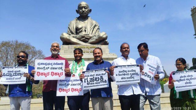 ಬೆಂಗಳೂರು; ವಿಧಾನಸೌಧದ ಗಾಂಧಿ ಪ್ರತಿಮೆ ಬಳಿ ಜೆಡಿಎಸ್ ಶಾಸಕರು ಪ್ರತಿಭಟನೆ ನಡೆಸಿದ್ರು.ಜೆಡಿಎಸ್ ಶಾಸಕಾಂಗ ನಾಯಕ ಸುರೇಶ್ ಬಾಬು ನೇತೃತ್ವದಲ್ಲಿ ಧರಣಿ ನಡೆಯಿತು.ಗ್ಯಾರಂಟಿ ಹಣ ಬಿಡುಗಡೆ, ಅಭಿವೃದ್ಧಿ ಶೂನ್ಯ ವಿಚಾರವಾಗಿ ಸರ್ಕಾರ ವಿರುದ್ಧ ಜೆಡಿಎಸ್ ಶಾಸಕರು ಹೋರಾಟ ಮಾಡಿದ್ರು.ಧರಣಿಯಲ್ಲಿ ಜೆಡಿಎಸ್ ಶಾಸಕರು,ಎಂಎಲ್ಸಿಗಳು ಭಾಗಿಯಾಗಿದ್ದರು.